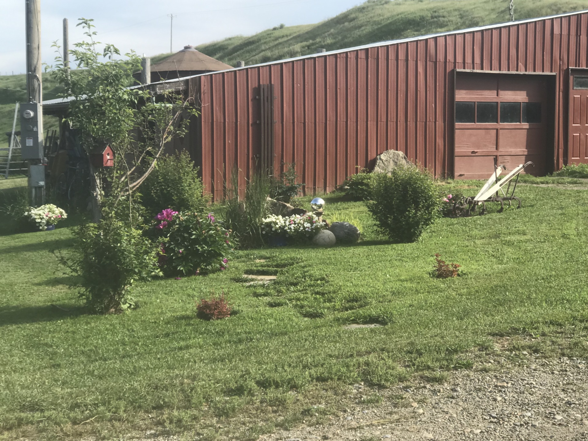 Here's a screen shot from Google Earth, showing all of our property, Willow Creek to the east, and the property inbetween. The west edge of our property follows the gravel road going south off the pavement and curving around to the south. The east edge starts at the paved road to the north, going south along he N/S tree line) the line under the letter "n" from the CPR Station pin). The fence continues straight south until it reaches the gravel road again. Easily seen on this screen shot is the house, the tin roof of the large carport/garage south of the house, the machine shop to the east of that, and south of the carport is the circular 'bee shack' and south of that is the tin roof of the barn. Immediately west of the house is the hillside, with flat pasture on top of the hill. South of the barn is flat pasture land, the hillside heading west, and flat pasture land on top of the hill.